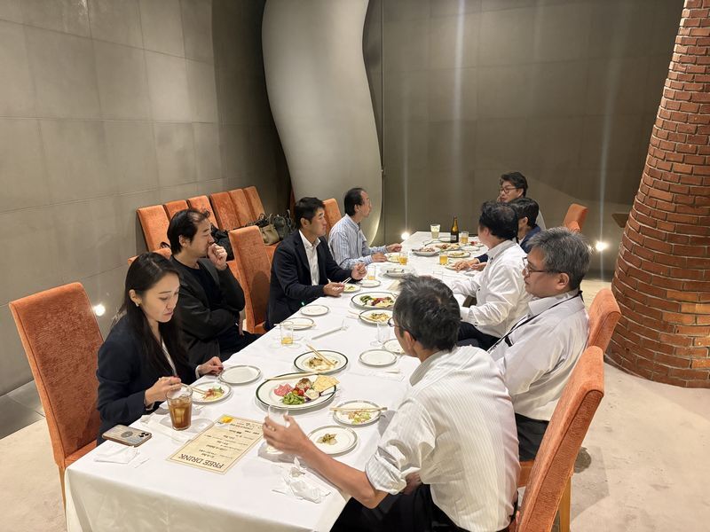 委員会終了後は場所を移動し、金の炎が目印の聖火台部分のビアレストランで懇親会を実施しました。周囲の雑音がなく、静かな個室環境で、熱心な意見のやり取りが見られました。